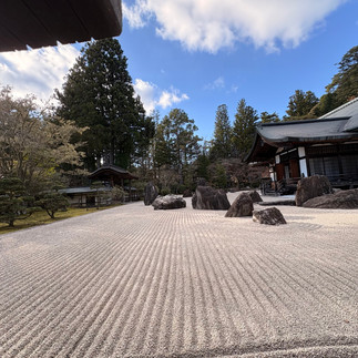 Ons eerste bezoek was aan de hoofdtempel Kongobuji waar de grootste karesansui (droogtuin of rotstuin) van Japan zich bevindt en gekend is onder de naam Banryutei.