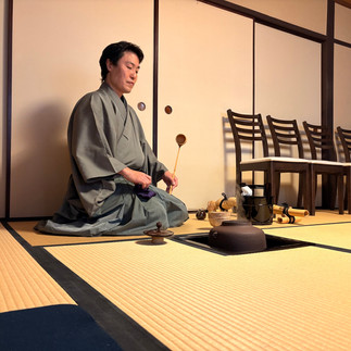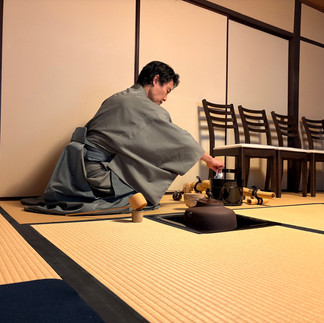 De theeceremonie (Chado of De weg van de thee) die er voor ons werd verricht was volgens een eeuwenoude samuraitraditie die van generatie op generatie wordt doorgegeven. De gebruikte matcha was van de hoogste kwaliteit en werd met de grootste zorg behandeld. We kregen uitgebreide uitleg van alle gebruikte objecten alsook van wat er allemaal gebeurde tijdens de ceremonie. Zoals we reeds veel ervaren hebben tijdens onze studiereis gebeurde dit met zeer grote precisie en aandacht. Je merkt hierbij terug de grote invloed van Zen op. Na de ceremonie mochten we zelf matchathee bereiden volgens de regels van de kunst maar hier werden we natuurlijk deskundig in begeleid. Op het einde werd zoals gebruikelijk tijdens deze reis terug een groepsfoto genomen en kregen we de kans om matcha en andere attributen voor thee te kopen.